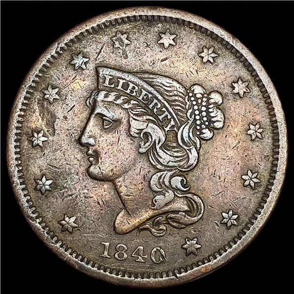 1840 Sm Date Braided Hair Large Cent ABOUT UNCIRCU