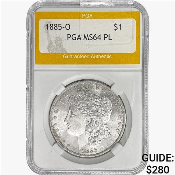 1885-O Morgan Silver Dollar PGA MS64 PL
