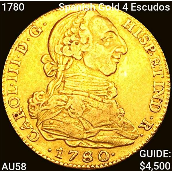 1780 Spanish Gold 4 Escudos CHOICE AU