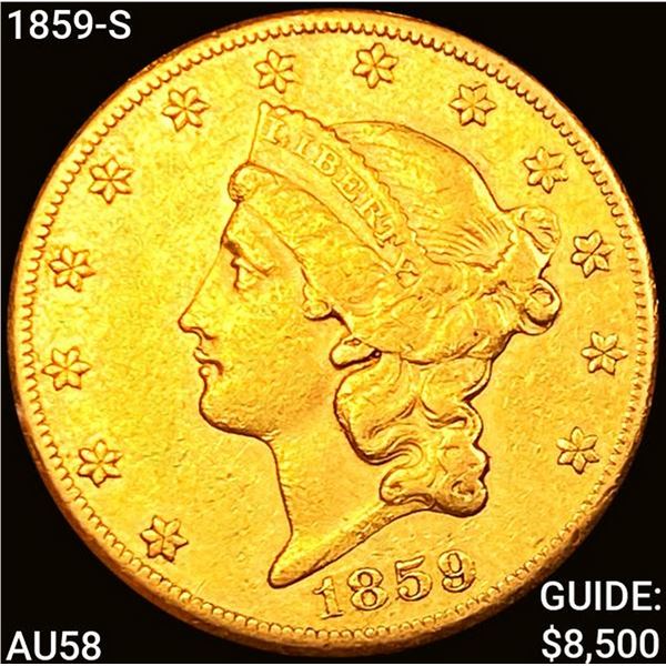 1858-S $20 Gold Double Eagle CHOICE BU+