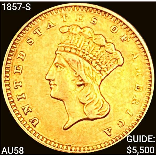 1857-S Rare Gold Dollar CHOICE AU311811 - 1857-S Rare Gold Dollar CHOICE AU