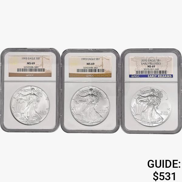 [3] American Silver Eagles NGC MS69 [1988, 1991, 1