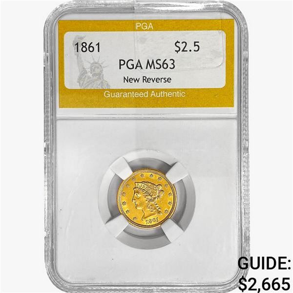 1861 $2.50 Gold Quarter Eagle PGA MS63 New REV