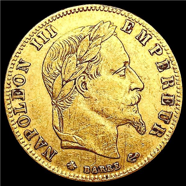 1864-A France .0467oz Gold 5 Francs NEARLY UNCIRCU