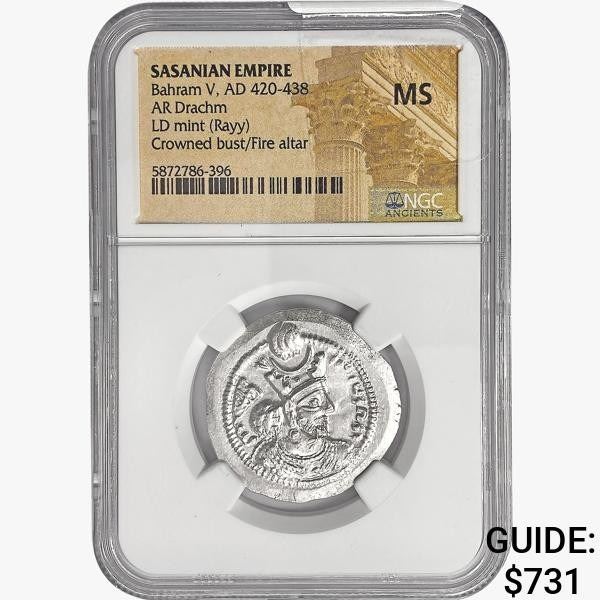 420-438 AD Sasanian Empire Silver Drachm NGC MS