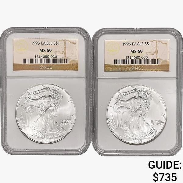 [2] 1995 American 1oz Silver Eagles NGC MS69