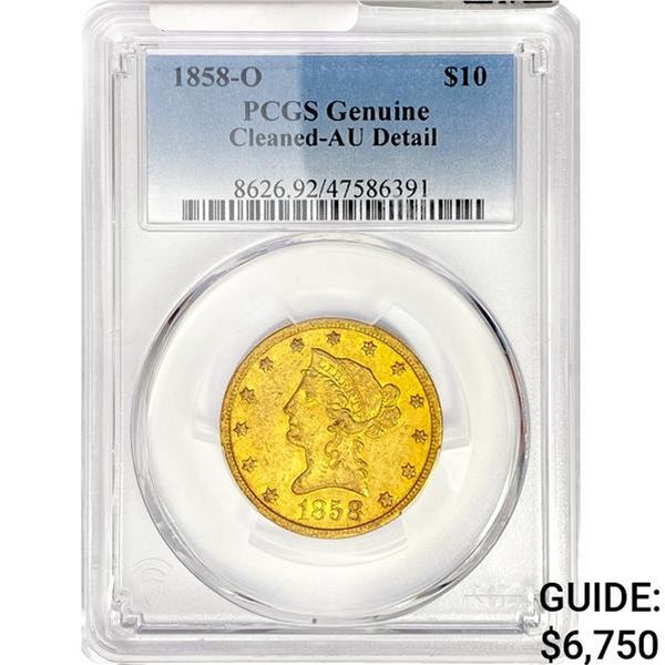 1858-O $10 Gold Eagle PCGS AUDet. Cleaned