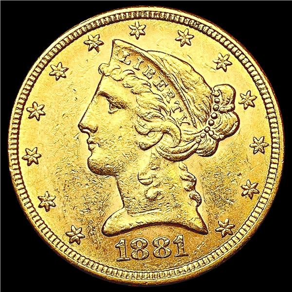 1881 $5 Gold Half Eagle UNCIRCULATED