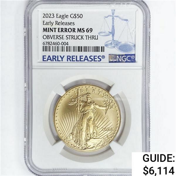 2023 $50 1oz AGE NGC MS69 Obv Struck Thru