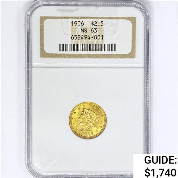 1906 $2.50 Gold Quarter Eagle NGC MS6351217a - 1906 $2.50 Gold Quarter Eagle NGC MS63