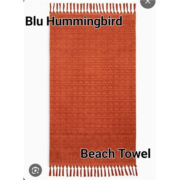 Luxurious terracotta-colored towel, soft and absorbent with decorative patterns and fringes, new.