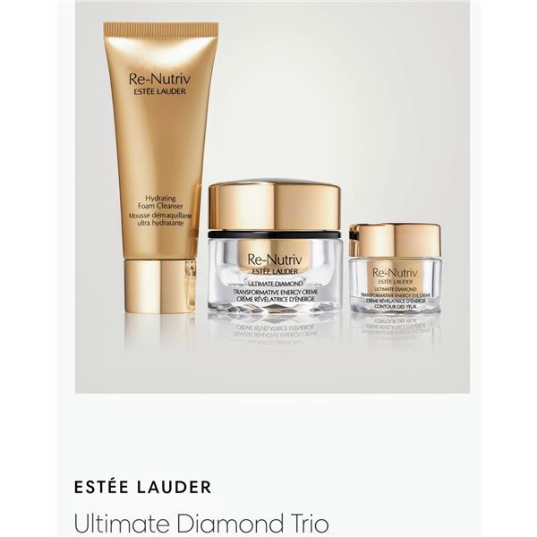 Luxurious three-piece skincare regimen, includes hydrating cleanser, transformative energy crème, and eye crème, new.