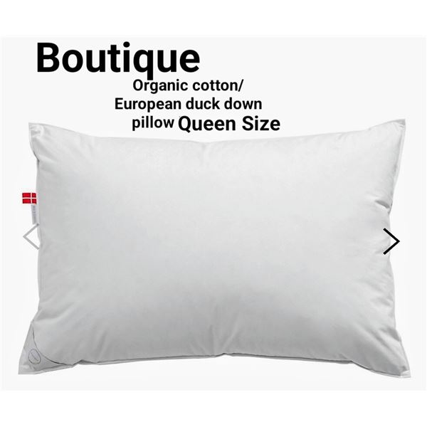 Organic cotton cover, queen size with European duck down, hypoallergenic, new.