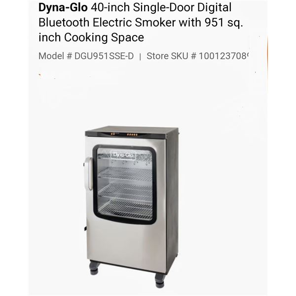 Dyna-Glo 40-inch electric smoker with Bluetooth and digital controls, 951 sq. inch capacity, new.