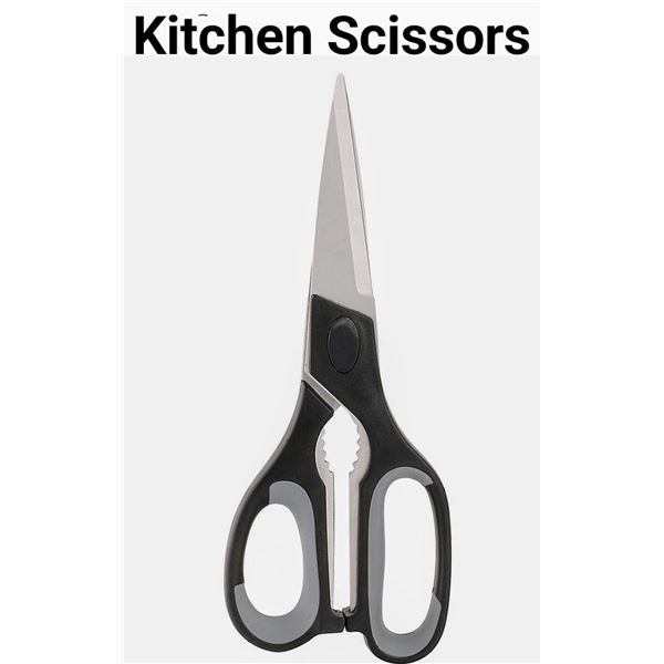 Multifunctional kitchen scissors with grip-enhancing handles, built-in bottle opener, new.