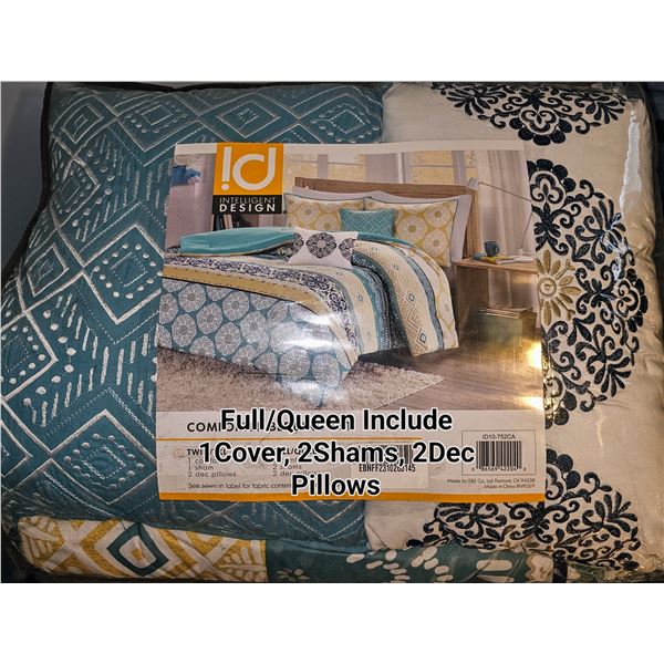 Full/Queen size, includes 1 comforter, 2 shams, and 2 decorative pillows, stylish patterns, new.