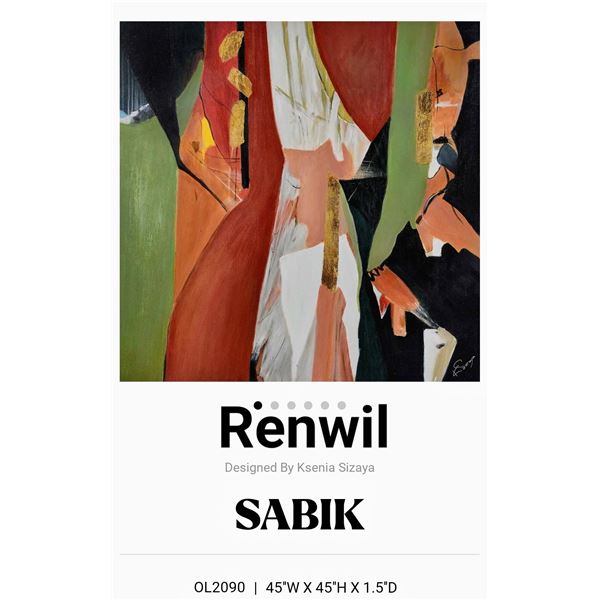 Abstract canvas painting, 45"W x 45"H, bold and earthy tones with metallic accents, new.