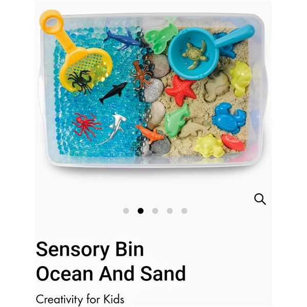 Interactive play set with ocean-themed toys and kinetic sand, stimulates touch and play, new.