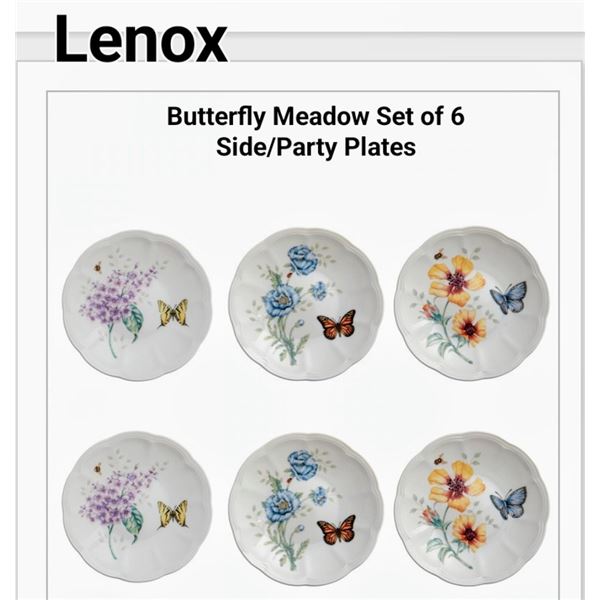 Porcelain side plates with elegant butterfly and floral designs, set of six, dishwasher safe, new.