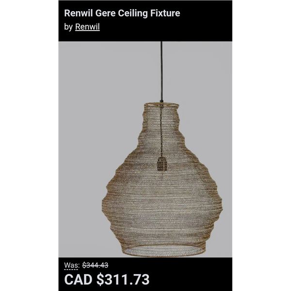 Hand-woven ceiling lamp, textured gold chain material, shade has unique shape, great for outdoor patio lighting, new.