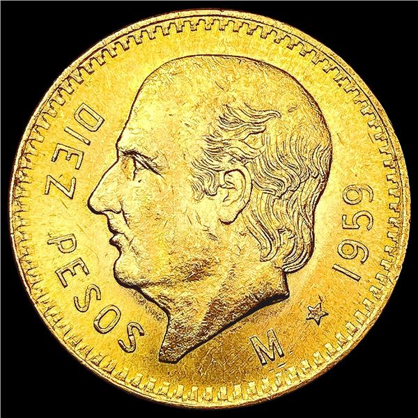 1959 Mexico .2411oz Gold 10 Pesos CHOICE BU