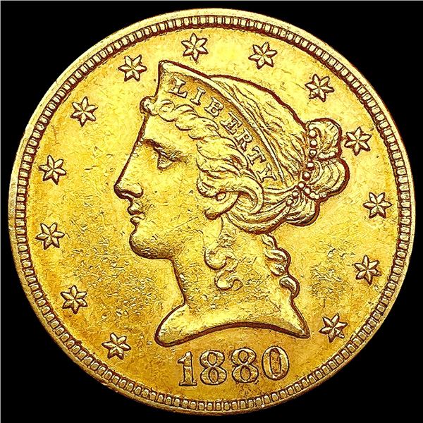 1880 $5 Gold Half Eagle CLOSELY UNCIRCULATED