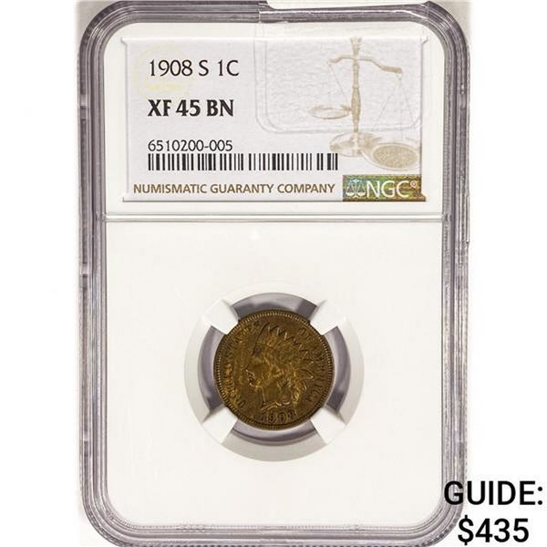 1908-S Indian Head Cent NGC XF45 BN49929a - 1908-S Indian Head Cent NGC XF45 BN