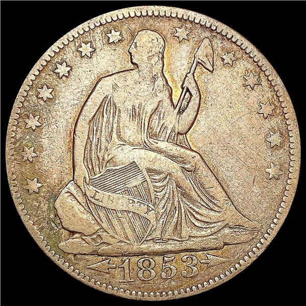 1853 Arws & Rays Seated Liberty Half Dollar LIGHTL49954 - 1853 Arws & Rays Seated Liberty Half Dollar LIGHTL
