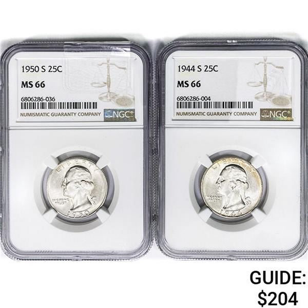 1944&1950-S [2] Washington Silver Quarter NGC MS66