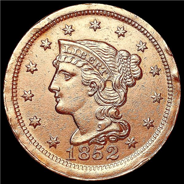 1852 RED Braided Hair Large Cent HIGH GRADE