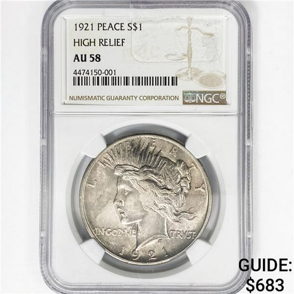 1921 Silver Peace Dollar NGC AU58 High Relief