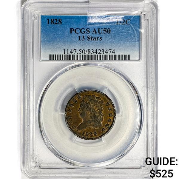 1828 Classic Head Half Cent PCGS AU50 13 Stars