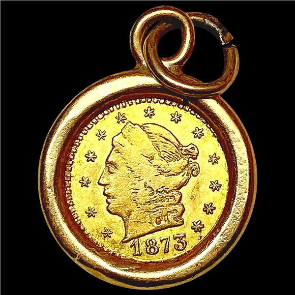 1873 Rnd CA Gold Quarter w/ 14K Gold Bezel LIGHTLY