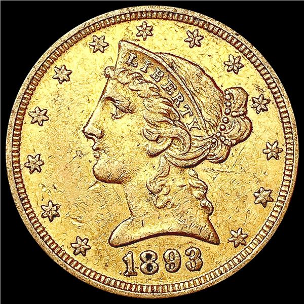 1893 $5 Gold Half Eagle CLOSELY UNCIRCULATED