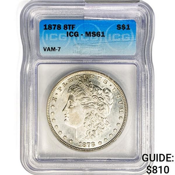 1878 8TF Morgan Silver Dollar ICG MS61 VAM-7