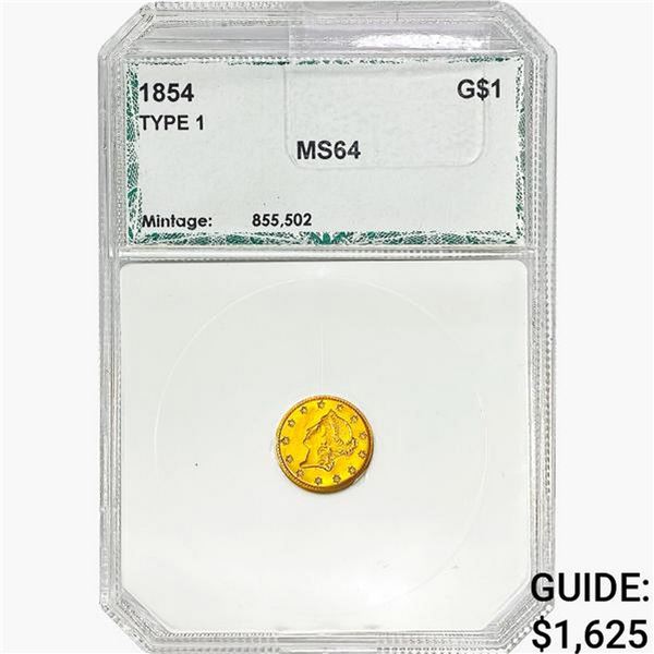 1854 Rare Gold Dollar CLOSELY UNCIRCULATED