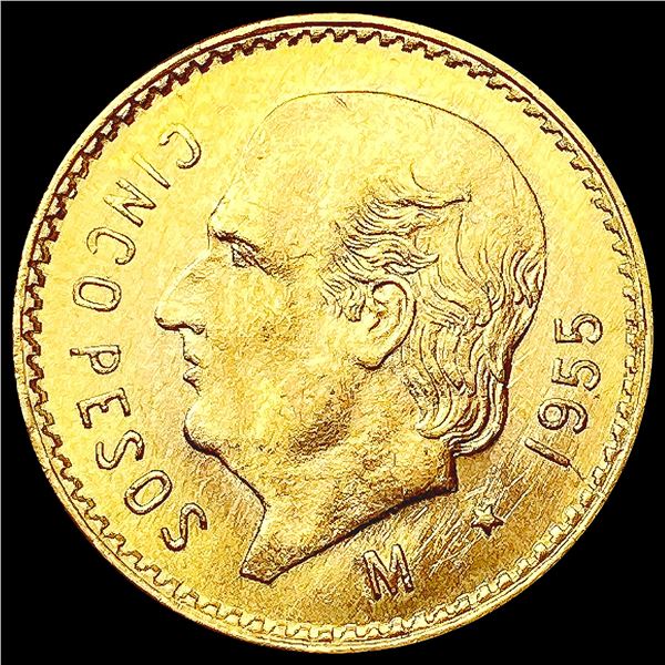 1955 Mexico .1206oz Gold 5 Pesos UNCIRCULATED