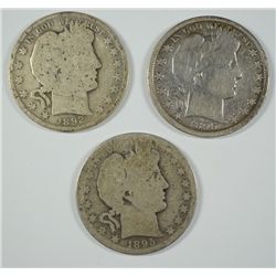 (3) BARBER HALF DOLLARS (92, 95, 95-O)321 - (3) BARBER HALF DOLLARS (92, 95, 95-O)
