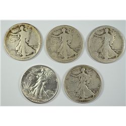 (5) WALKING LIBERTY HALF DOLLARS (16, 16-D, 16-S, 17-D OBV, 41-D)324 - (5) WALKING LIBERTY HALF DOLLARS (16, 16-D, 16-S, 17-D OBV, 41-D)