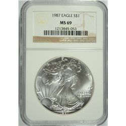 1987 SILVER AMERICAN EAGLE NGC MS-69344 - 1987 SILVER AMERICAN EAGLE NGC MS-69