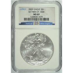 2009 SILVER AMERICAN EAGLE NGC MS-69345 - 2009 SILVER AMERICAN EAGLE NGC MS-69