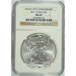 2011 SILVER AMERICAN EAGLE NGC MS-69346 - 2011 SILVER AMERICAN EAGLE NGC MS-69