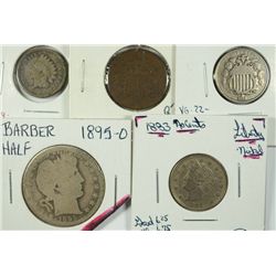 MISC COIN LOT (1862-1C, 1864-2C, 1868-5C, 83 N/C-5C, 1895-O-50C)350 - MISC COIN LOT (1862-1C, 1864-2C, 1868-5C, 83 N/C-5C, 1895-O-50C)