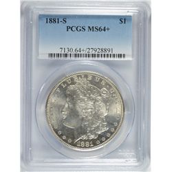 1881-S MORGAN SILVER DOLLAR, PCGS MS-64+  BLAST WHITE!361 - 1881-S MORGAN SILVER DOLLAR, PCGS MS-64+ BLAST WHITE!