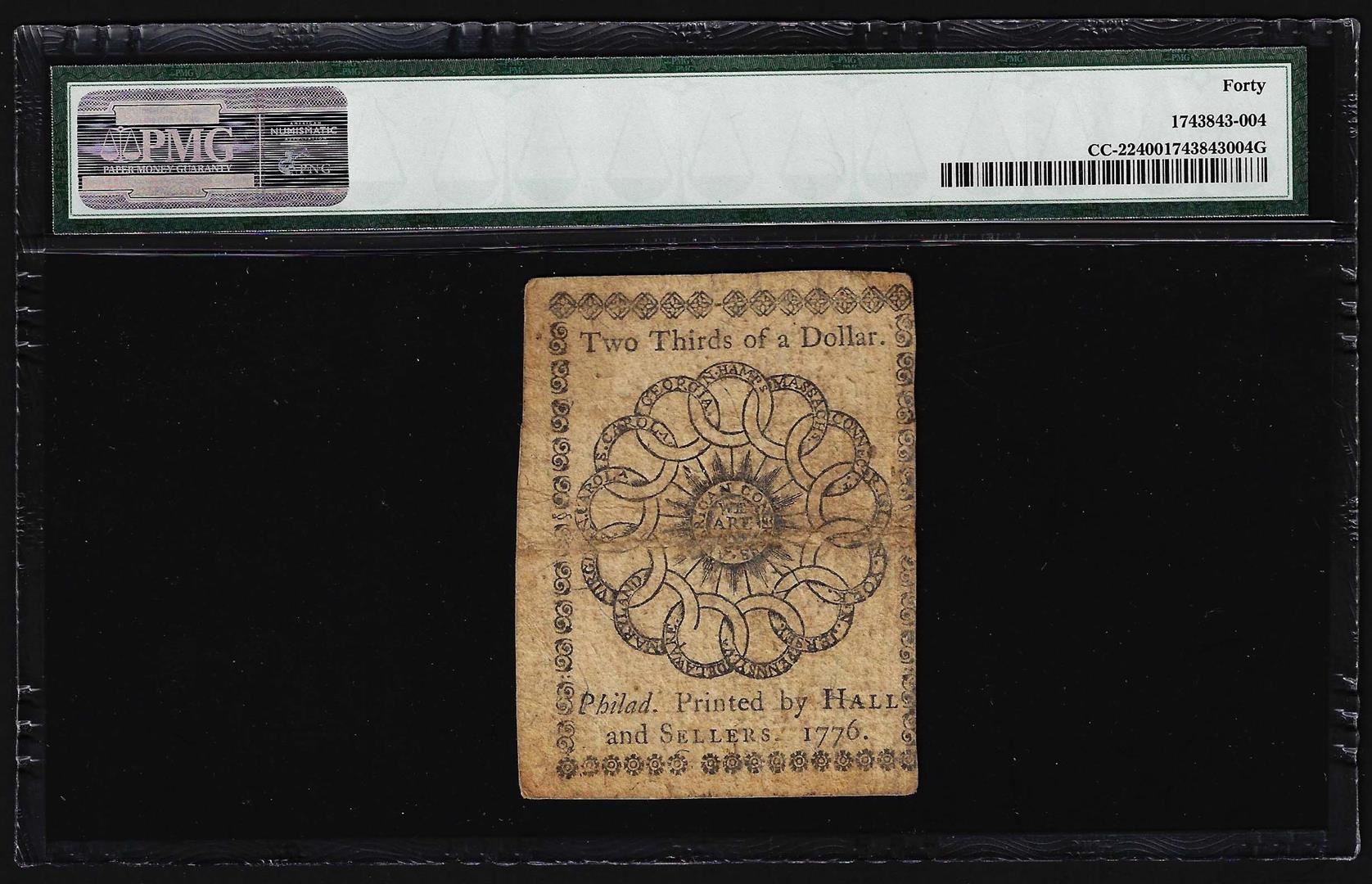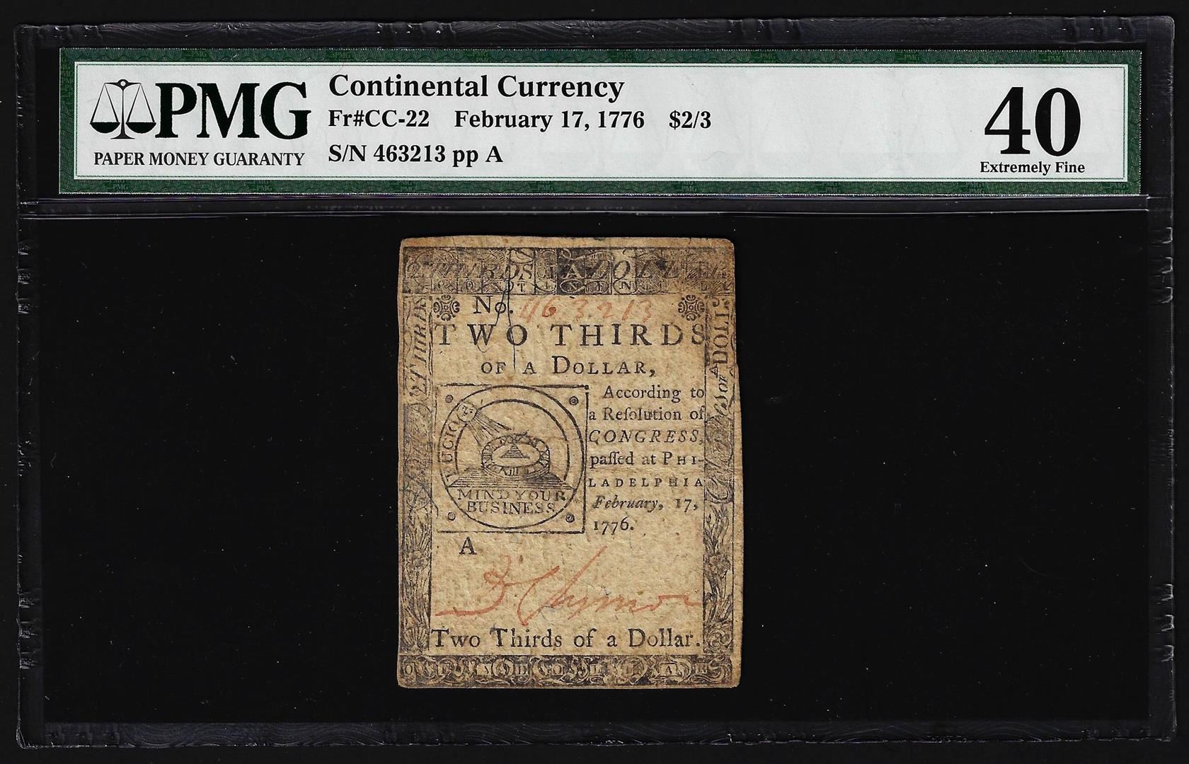 February 17, 1776 $2/3 Continental Currency Note PMG Extremely Fine 40