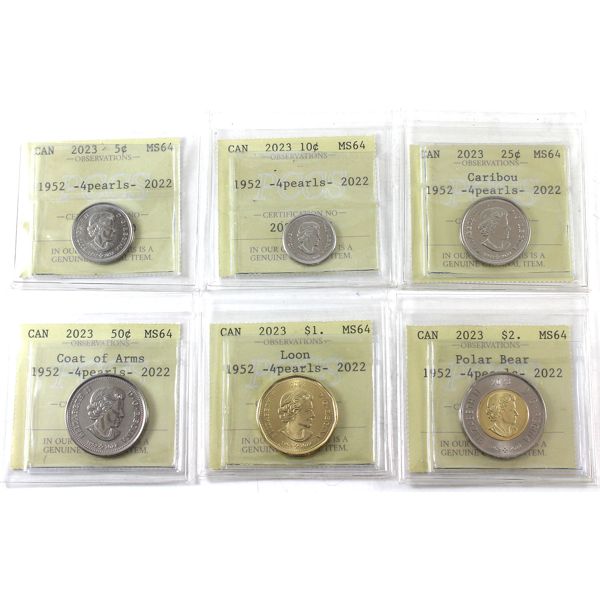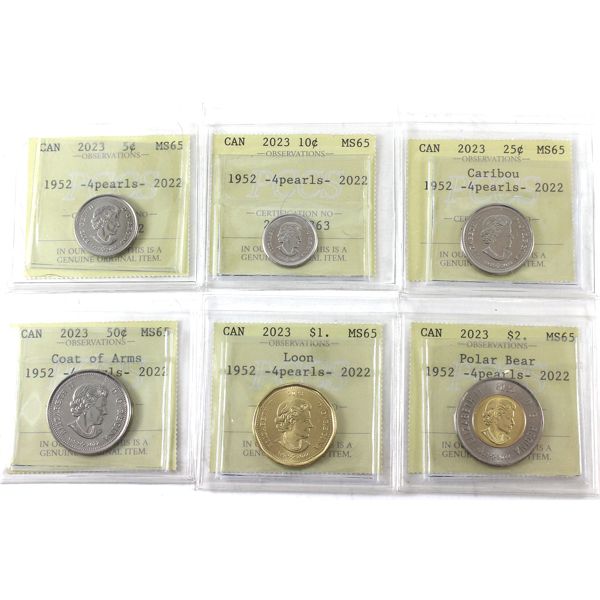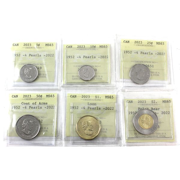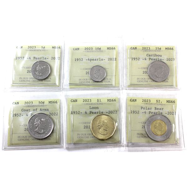 5-cent - $2 2023 All (1952-2022) 4 Pearls PCCS (Professional Coin Certification System) MS66. 6pcs.