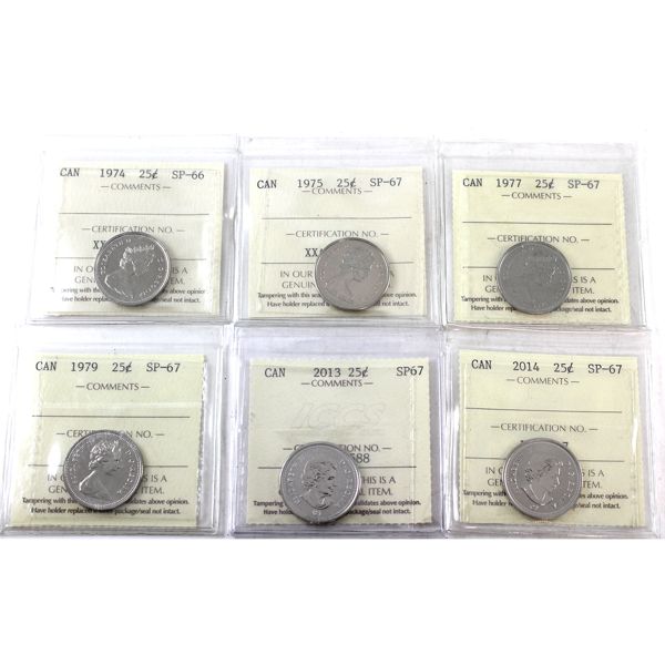 25-cent 1974 SP66, 1975, 1977, 1979, 2013 & 2014 SP67 All ICCS. 6pcs.