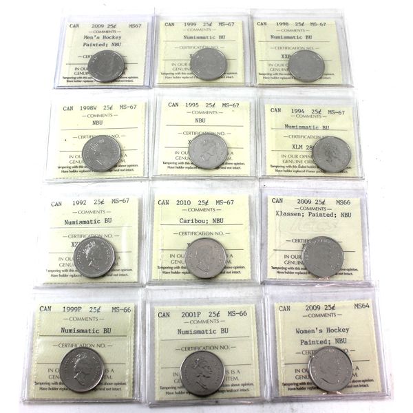 25-cent 1992-2010 All NBU ICCS Certified MS64 to MS67. 12pcs.