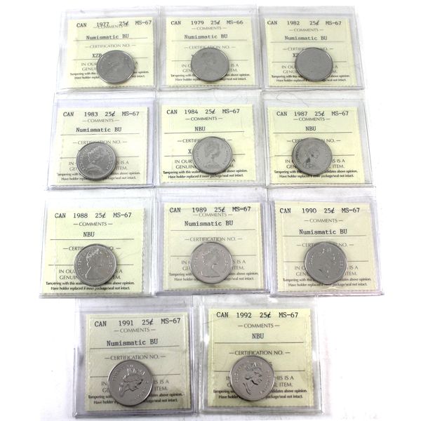 25-cent 1979 MS66, 1977, 1982, 1983, 1984, 1987, 1988, 1989, 1990, 1991, 1992 MS67 All NBU ICCS