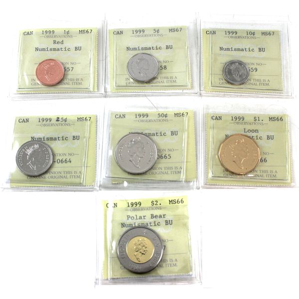 INCLUDES: 5-cent, 10-cent, 25-cent Caribou, 50-cent Coat of Arms, $1 Loon & $2 Polar Bear. 6pcs.